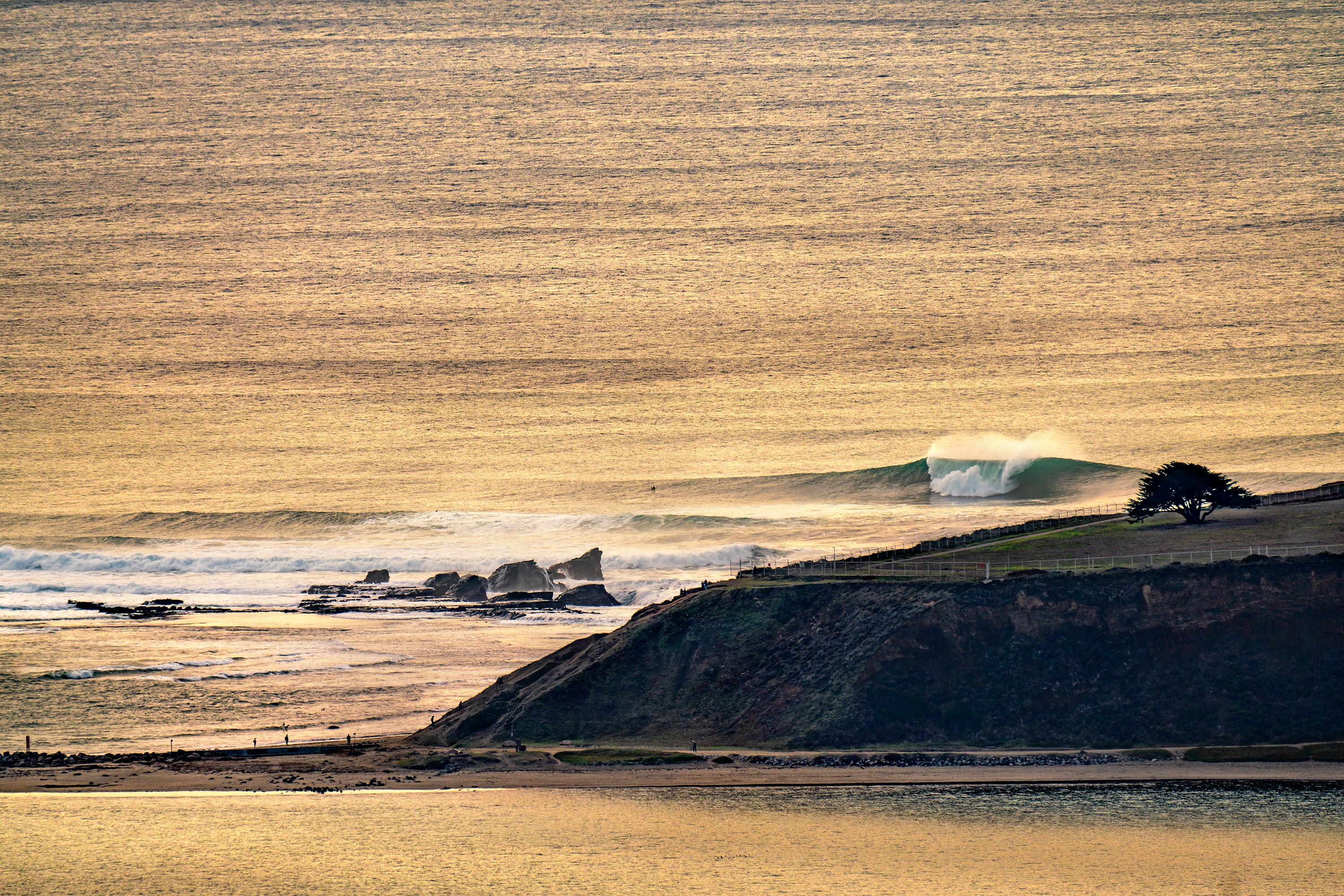 On a rare, perfect evening at Mavericks, the Northern California coast transforms into a stage of pure majesty, golden walls of water rising like diamonds of the Pacific. In flawless conditions, the wave reveals its true character: powerful, elegant, and endlessly complex.    For decades, Mavericks has drawn a devoted tribe of big-wave surfers, men and women who have dedicated their lives to studying its moods, timing its swells, and testing their limits against its power. This photograph captures a perfect empty wave breaking in complete solitude. No surfers, no boats, only the rhythm of nature unfolding in silence. This image captures that fleeting perfection, like a dream, when power meets peace, and the ocean reveals its pure, untouched beauty, reminding us that even the most legendary waves have moments meant for no one but themselves.